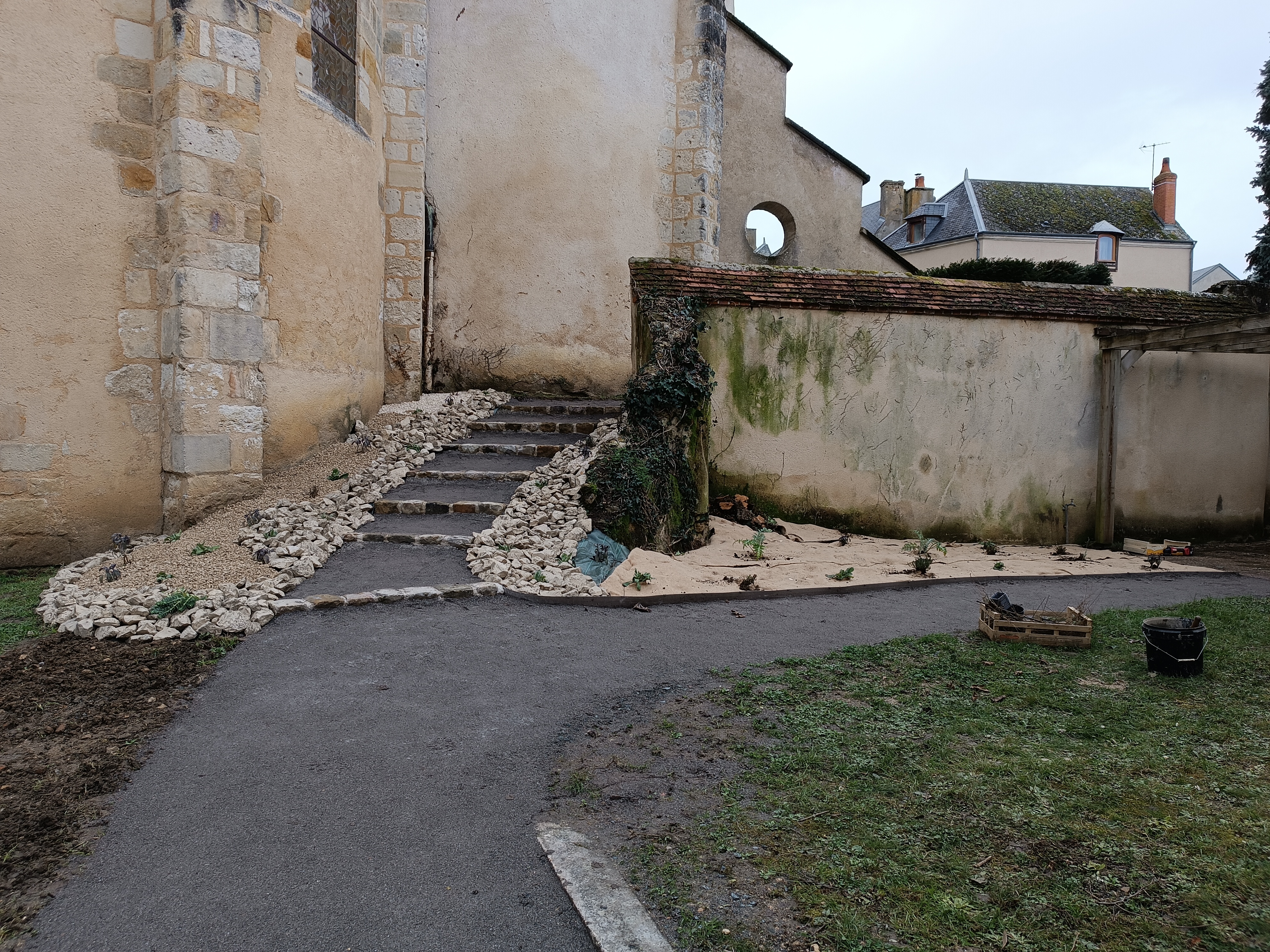 Après quelques travaux de terrassement et d’aménagements paysagers, le jardin situé derrière l’église est de nouveau accessible au public.